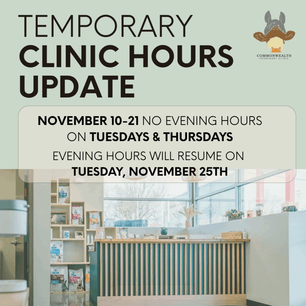 We began Commonwealth with the vision of doing veterinary medicine differently. We strive to provide a comfortable, welcoming environment where you and your pet can be at ease. Having a sick animal can be very stressful for both owner and patient, so we work to minimize the stress of veterinary clinic visits. Your pet’s health and well-being are our top priority.